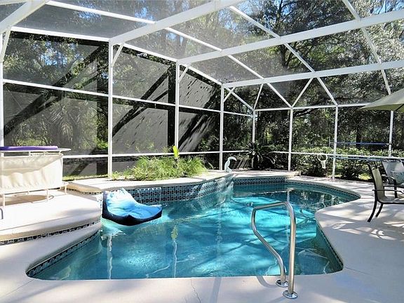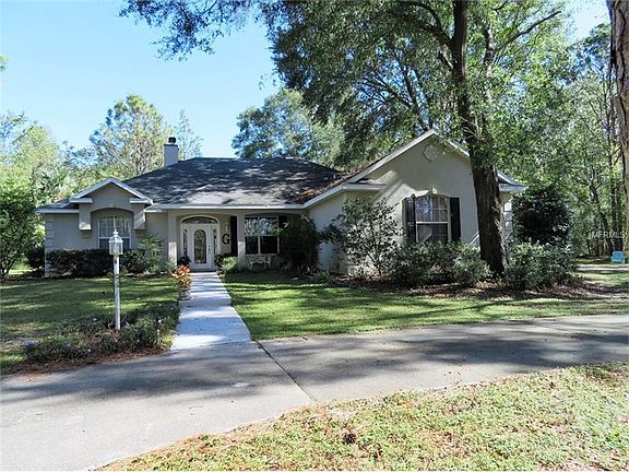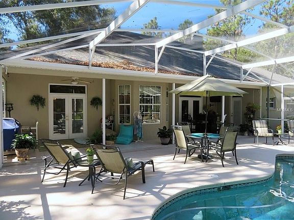 Everything you want! This lovely home has it all! 3 bed/ 2 bath and the den has a closet if you need a 4th bedroom all on 4.99 acres. From the moment you step in the inviting entryway you feel at home. The spacious living room has high Ceilings, a gas fireplace, Crown Molding and French doors that lead to the Pool and is open to the Kitchen and Dining Room. This is a split plan home. The Master Bedroom has high ceilings and walk in closets. The luxury master bath has double vanities and a large shower. The Pool is heated and is screened. There is plenty of deck area for outdoor entertaining. The property is wooded and is beautifully landscaped. There is even a fenced outdoor dog area. Located just minutes to The Villages, shopping and entertainment. Private and peaceful. This could be the home of your dreams. Ready to move in!