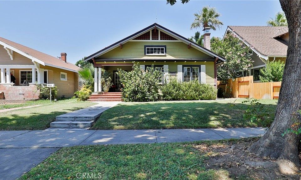 Welcome to your Downtown Riverside Historic Craftsman Home - a short walk to the Fox Theater, the Food Lab, the Riverside farmer's market, and the Festival of Lights at the Mission Inn. This 105-year-old home has been well cared for and is historically accurate with an expansive 7,405 lot with 1,320 living sqft. In addition to forced air, heat, and a tankless water heater, this home features a two-car, fully finished garage with water and plumbing and a dedicated 50-amp sub-panel. It was recently, in 2020, hand-painted by an award-winning, historically accurate painter. There's a large lanai front porch, a living room with a fireplace, and double custom pocket doors leading from the Living room to the dining room. The kitchen was remodeled, retaining as much of the original design as possible with new appliances. Off the kitchen is a 'mud room' with cabinetry and washer and dryer as one exits the rear of the home to the rear covered patio. Over $25,000 was spent on rewiring the home with a new 200 amp panel in 2020. The hallway is a large quadrangle opening to the bathroom and both bedrooms, each with a walk-in closet. The home features original doors, windows, plaster walls, and hardwood floors. Rooms are large and well-lit, complimented by the nearly 10' ceilings with crown molding. Off the kitchen is a stairway to the basement, currently used as a family room, which is about 400 ft of additional space, bringing the total of the home to an estimated 1,720 sq ft. The basement adds extra living space that is useable for many activities. The large private yard is nicely landscaped, and a sidewalk leads to the garage, accessible by car from the alley. This home is a rare find.