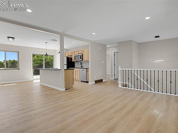 Completely remodeled bi-level home tucked away at the end of a serene cul-de-sac in the sought-after Vista Grande neighborhood. This beautiful home sits on an expansive lot, providing ample outdoor space. Inside, every detail has been thoughtfully updated. The kitchen is the centerpiece, featuring new cabinets, sleek granite countertops, and brand-new stainless steel appliances, with an open layout seamlessly connecting it to the living and dining areas—ideal for gatherings. New laminate flooring and carpet throughout, along with updated bathrooms featuring stylish finishes that add a touch of luxury. Updated lighting fixtures and fresh paint inside and out give the home a bright, welcoming atmosphere. The newly constructed 18 x 18 deck offers stunning views of Pikes Peak. Located just steps away from Keller Park, this home is completely move-in ready!