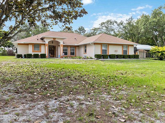 Don't miss the opportunity to own this hidden sanctuary in the highly sought-after neighborhood of Canaveral Groves. This charming 3-bedroom, 2-bathroom home is situated on a spacious lot spanning a little over an acre. Newly paved circle driveway (2023),