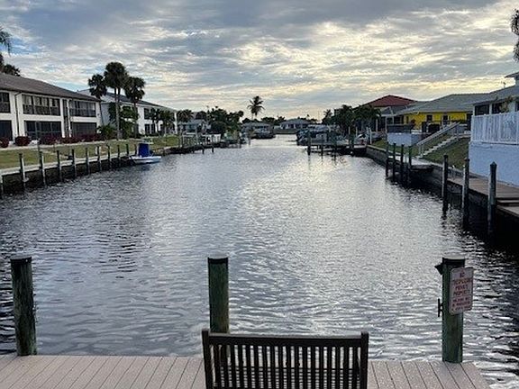 Nice waterfront condo in South Cape. This home comes with a large lanai overlooking the community pool. The home has brand new floors, fresh paint throughout, gray tones, white trim that pops! All new appliances glass top stove, dishwasher and refrigerator. Also, a 1 car garage as well! This is a must see!