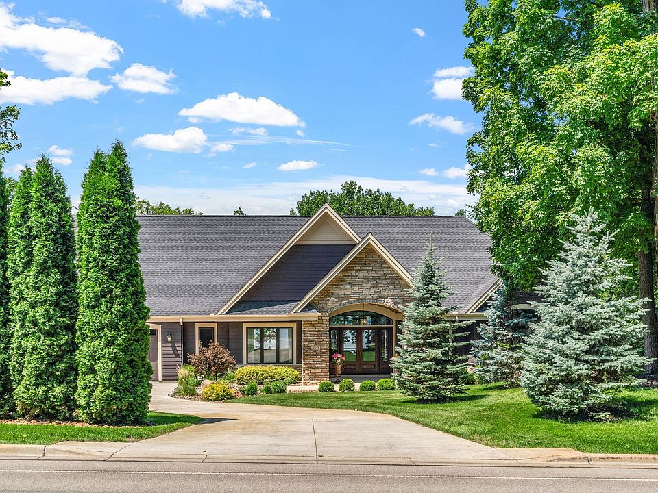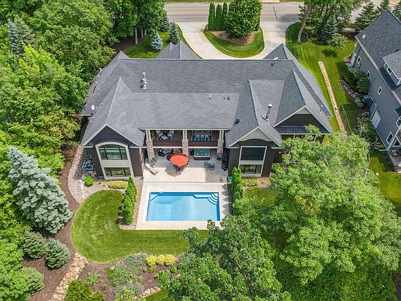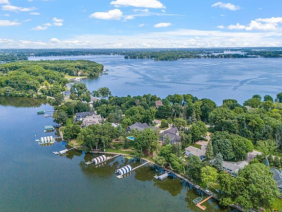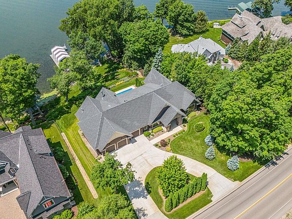 Seeing is believing! Construction was complete in 2020 and no expense was spared. If you are a car guy/gal, you've got 10 garages of finished, heated space. More of a boat enthusiast? - no problem you've got 170 ft of private shoreline. Is a pool & hot tub more to your liking? We've got you covered there too. The main floor was professionally decorated in 2024 with Taj Mahal quartzite countertops, lake home color palette and soft cozy furniture. The Chef's kitchen boasts subzero refrigerator, gorgeous walnut cabinets mixed w/ white enameled cabinets. The walk-in pantry boasts an additional refrigerator and coffee bar. You'll love the 6 burner thermidor range. The island is the hub with tons of storage and seating for 6. Maybe you'd rather grill in your screened in porch on your Coyote gas grill and Viking commercial exhaust hood while you watch your favorite show in front of your wood burning fire place. The main floor is finished off with a light filled office, relaxing master suite including an expansive view of the lake, steam shower, huge walk in closet with island and direct access to the upper deck. The lower level has a secondary primary bedroom with ensuite bath and walk in closet. It includes direct access to the patio/hot tub and pool. Two more bedrooms with a jack-n-jill bath and walk in closets. Always wished you had a billiards room? You do now including a west bar. Slide your two massive walnut barn doors open to find your own exercise room with sauna. Last but not least you'll find another garage space with 5 more spaces for a total of 10. This home is spacious but not "too big". The landscaping was on the cover of a local landscape magazine. The yard was been sloped and professionally landscaped with boulder walls and a gradual path to walk down to water's edge. A beautiful life starts with a beautiful home!