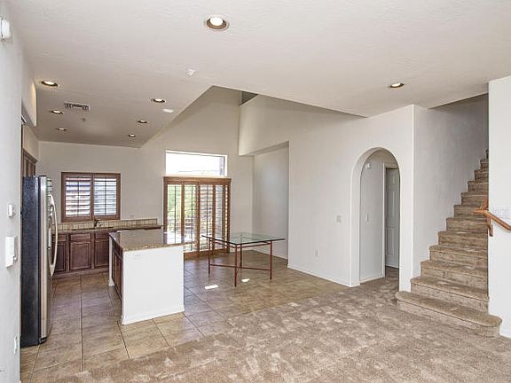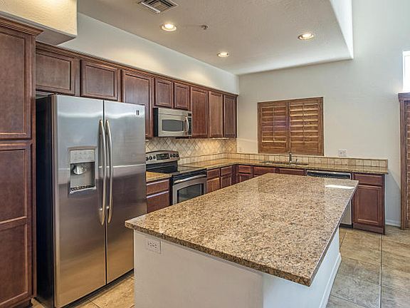 Great location west/sunset facing on a private wash area. New paint and floorng December 2015! Highly desired Villages at Aviano in Desert Ridge. Amazing kitchen features dark Granite countertops, upgraded cabinetry, Stainless GE Profile appliances, under mount sink, smooth top stove, built in microwave, breakfast bar. Kitchen opens onto great room and covered balcony overlooking the natural desert preserve. Plantation shutters, recessed lighting, water softener, Spacious garage. Washer, dryer & refrigerator included.