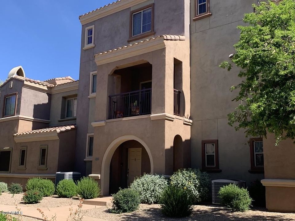 REDUCED! Villages at Aviano is the ultimate community for an active lifestyle in a perfect location just a few minutes from Desert Ridge restaurants, shopping, movie house, 101 and 51 freeways.This lightly lived in well maintained home has 2 master bedrooms, and powder room for guests. Attached 2 car garage, covered balcony, granite counter tops, Stainless GE Profile appliances, refrigerator, washer and dryer included. One of the most sought after floor plans. No one above or below! HOA amenities include Fitness Center, 2 pools/spas, conference room, lighted tennis courts, volleyball, rock climbing, basketball, play areas walking and bike trails. Gated community is ideal for lock and leave home with only a 20 minutes commute to airport.