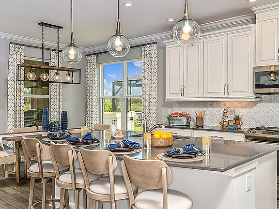 What's Special: Deep Backyard | East Facing Front | Oversized Garage Welcome to the Farnese at 3935 Figliolia Way in Esplanade at Wiregrass. This is one of Taylor Morrison's most beloved home designs. With over 2,100 square feet, this thoughtfully crafted layout offers space, comfort, and style. It features three bedrooms and plenty of room to grow, relax, and entertain. The designer kitchen is a true showpiece. It includes a spacious island, perfect for casual meals or hosting friends. The kitchen flows into the great room and a cozy dining nook, creating a bright and open gathering space. A separate dining room adds elegance for special occasions. Step outside to the lanai, just off the gathering room. It's the perfect spot to unwind and take in Florida's famous Gulf Coast sunsets. The primary suite is a peaceful retreat with a large walk-in closet and a spa-inspired bath featuring dual sinks and a roomy shower. Guests will feel right at home with their own private bedroom and full bath, conveniently located near the laundry room. Every detail of the Farnese is designed to elevate your lifestyle and showcase the Esplanade difference. Come explore this beautiful home and discover what makes it so special. Additional Highlights Include: gourmet kitchen, outdoor kitchen rough in, study, 3rd bedroom, and tandem garage . Photos are for Representative Purposes Only. MLS#TB8430302 Specifically designed for 55+, Esplanade at Wiregrass Ranch offers an unparalleled resort-style