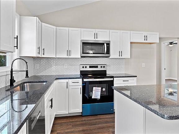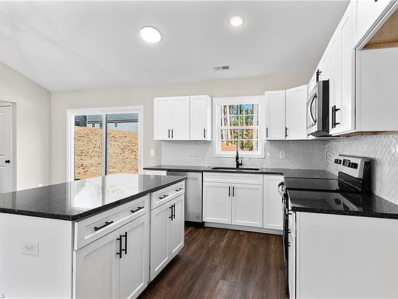 New construction! Welcome home to one level living with open floorplan, Vaulted Ceilings in Kitchen, Dining and Living Room, Open Dining area, Kitchen white shaker cabinets & quartz countertops, tile backsplash, Kitchen Island, Stainless/ Black appliances and two Pantries.. Laundry Room ... Primary Bedroom offers walk in closet, Primary Bath offers double sinks, large walk in shower and linen closet ... Ceiling fans throughout ... Split bedroom floorplan.. Slider doors to back patio and side entry door too ... Large Driveway Parking Area... Preferred Lender Ally Cain with Atlantic Bay Mortgage offering lender credit of 1% of loan amount up to $2500 - Direct: 336-794-6400 x 5435, Mobile: 336-479-2324, allycain@atlanticbay.com (See agent only for offer instruction) **DRIVEWAY WILL BE COMPLETED TO THE ROAD ONCE WATER/UTILITY LINES ARE COMPLETED (may get shoes muddy until driveway is complete - plan accordingly)