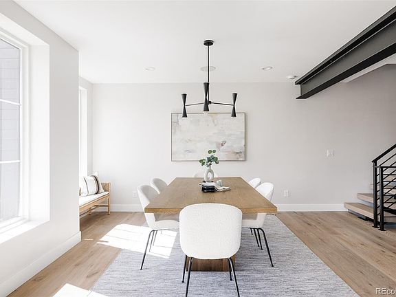 Poised in Berkley, this new construction residence flourishes with modern finishes. Picturesque landscaping surrounds a brick and wood-paneled exterior with a covered porch. Further inside, an open-concept layout well-suited for entertaining unfolds with light wood flooring. Modern and timeless finishes throughout and illuminated by contemporary lighting. Grounded by a center island with seating, a stylish kitchen showcases sleek cabinetry and high-end appliances. A sleek fireplace warms a spacious living area as folding glass doors open to a private patio. A sizable primary suite with mountain views is complemented by a spa-like bath and a large walk-in closet. Discover flexible living space on a finished lower level featuring a rec room with a wet bar and a beverage fridge. Retreat to a third-level entertaining area with mountain views and a sleek wet bar with beverage center and access to an expansive rooftop deck with stunning views. Enjoy a coveted location within easy walking distance to shops and restaurants on Tennyson St. and with proximity to Berkeley Lake and Rocky Mountain Lake parks.