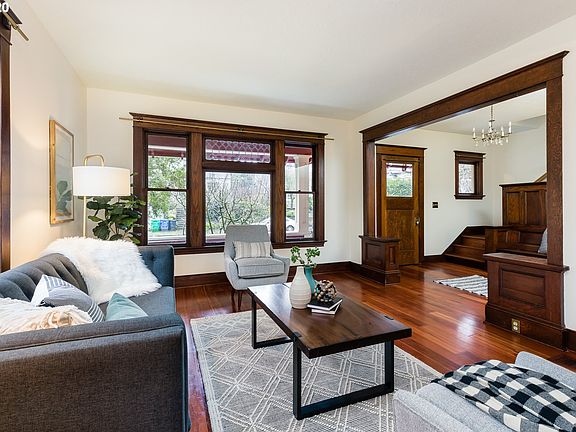 This gorgeous 1910 Four Square offers classic vintage details alongside modern amenities. Enjoy the original woodwork, built-ins, leaded windows, high ceilings, spacious foyer, gorgeous Brazilian Tigerwood flooring, updated kitchen with granite countertops, island and stainless steel appliances, covered front porch and back deck, built-in hot tub to warm you on cold Portland days, fully fenced & landscaped yard, and to top it off, full 2 bedroom separate living quarters with private entrance! [Home Energy Score = 4. HES Report at https://rpt.greenbuildingregistry.com/hes/OR10073058]