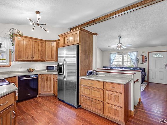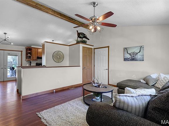 Welcome home to this beautifully maintained 2 bedroom, 2.5 bath ranch home offering the perfect blend of comfort, style, and functionality. The heart of this home features a custom kitchen with maple cabinetry, solid surface tops, and all appliances included-ideal for both everyday living and entertaining. Vaulted ceilings and gleaming wood floors enhance the open, airy feeling of the main level living spaces. A spacious workshop area off of the garage is perfect for hobbies or extra storage, while the finished lower level boasts a large family room and dedicated office area-ideal for work-from-home or relaxation. Step outside to enjoy the expansive covered deck and patio areas, all while overlooking a stunning 3/4+ acre flat, fenced-in backyard-your own private outdoor oasis!