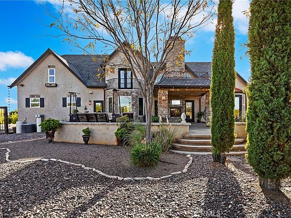 Welcome to Oakridge Ranch Estates, Equestrian Community Near Temecula's Wine Country. Build your Family Compound. This Beautiful 24.64 Acre Property Welcomes You Through Custom Electric Gates and Tree Lined Drive. Main House, Solar Paid For, Boasts 4206 Sq feet, (Includes Finished Attic and Wine Celler) With 5 ample Sized Bedroms if Needed. If 4 Bedrooms Needed you have a Huge Bonus Room Upstairs. Two Bedrooms Upstairs Have Their Own Bathrooms On Suite and Privite Balconies. Bonus Room Also Has a Balcony. First Floor Features Distressed Walnut and Stone Flooring. The Open Floorplan, Family Room, Gormet Kitchen, Breakfast Bar, and Kitchen Nook with Senic Bay Window Designed for Entertaining. Beautiful Woodwork and See-Through Fireplace to Large Outside Patio. Dining Room/Office and Large Wine Celler. Master Suite Opens up to Sweeping Valley Views. M-Bath has two Closets and 2 Privite Water Closets. Shower is Big and Beautiful/2 Shower Heads.and Seating. Jetted Tub and Vanity. Large Loft Space at Top of Wide Staircase. Outside Back Patio has Panoramic Views. Backyard has Huge Doghouse, Tool Shed. Property has a Large Fenced Aviary Area, 5 Chicken Houses and Separate Goat and Shed Area. Fencing is Duel, Black Vinyl and Metal. Property is Sub-Dividable. Plant Personal Vinyards or Bring Your Horses and use the Community 40 Miles of Horse Trails. Great Schools, Shopping, and Enjoy The Temecula Wineries!