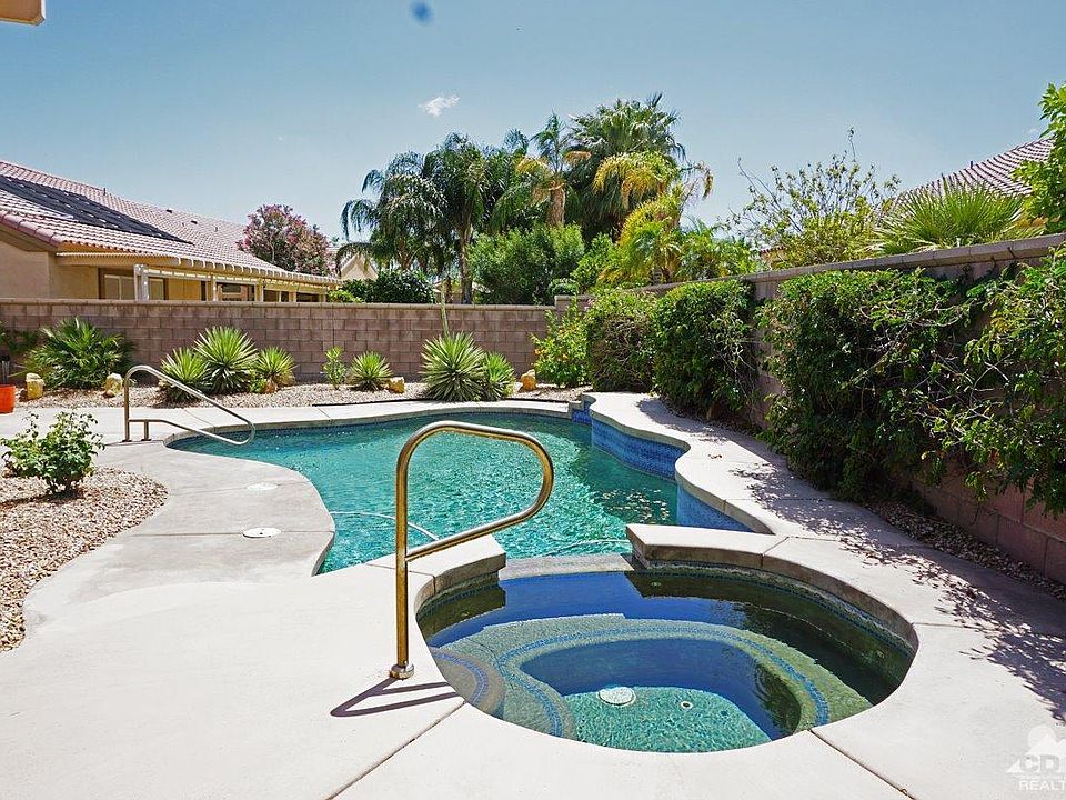 Sun City Palm Desert- Marrakech. On An Oversized Southwest Lot On A Quiet Cul-De-Sac, This Home Has A Salt Water Black Bottom Pool & Spa That Saves Energy. You Enter This Home Through A Private Gated Courtyard. The Home Consists Of 2 Bedrooms, 2 Full Baths, Kitchen With Breakfast Bar, Family Room, Living Room & Den/Office. This Open Floor Plan Is Light & Bright With A Solar Tube & Transom Window To Bring In The Natural Light. The Great Room Is Separated From The Kitchen By A Pony Wall, There Is Custom Diagonally Laid Tile In All But The Great Room & Bedrooms. The Spacious Master Suite Has A Bay Window Overlooking The Yard & Pool & A Master Bath With A Double Pullman, Glass Enclosed Stall Shower & A Walk In Closet. The Guest Bedroom Has Mirrored Wardrobe Doors. The 2-Car Garage Has Built-In Storage & A Nook For Golf Cart Parking. The Home Is Equipped W/Electronic Air Filtration. Seller Will Consider Giving A Carpet Allowance.