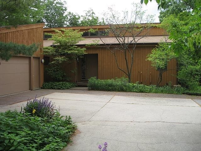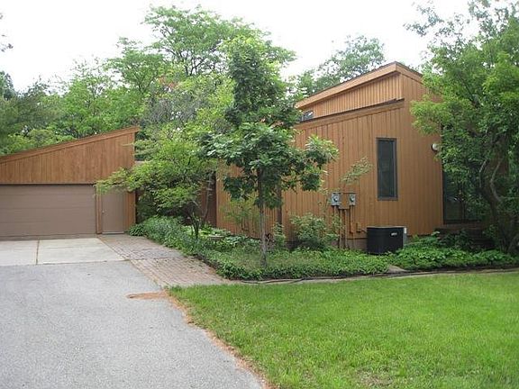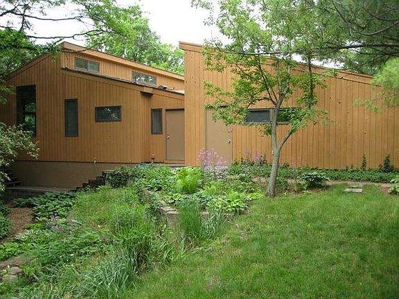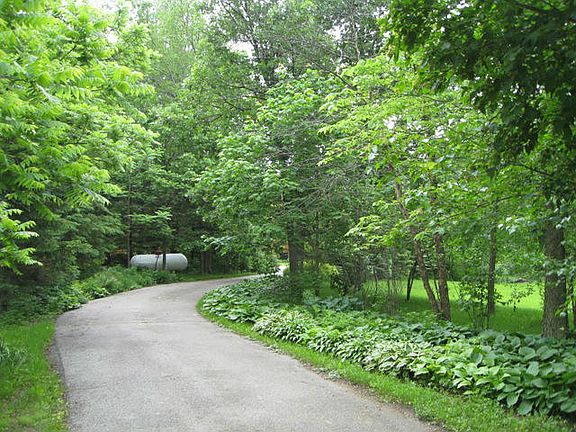 Contemporary home on a secluded timbered lot off N. Dakota Av and South off Cameron School Rd. Multiple sliding doors and glazing on Southern wall (both levels) for picturesque view of woods. Woodburning FP on each level incl. mbdrm. Vaulted ceilings and laundry on main. Full length deck, brick patio & many plantings. Short trip to campus. Newer HE furnace/ac. Rural water.
