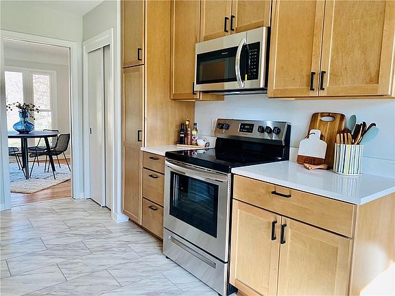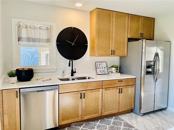 Come see this completely renovated walkout ranch. Home has picture windows that overlook a large fenced in backyard, with shed/workshop. Kitchen and bathroom have matching custom cabinetry and Quartz Countertops. Basement bath is a great size with a tiled shower. Home has a one car attached garage. Parking is available in this double wide driveway, with even more parking space next to garage. You have to experience this mid-century modern home that has so many things to offer, call today!