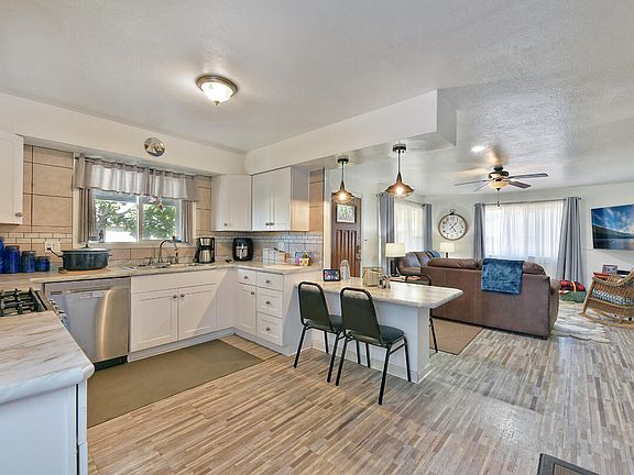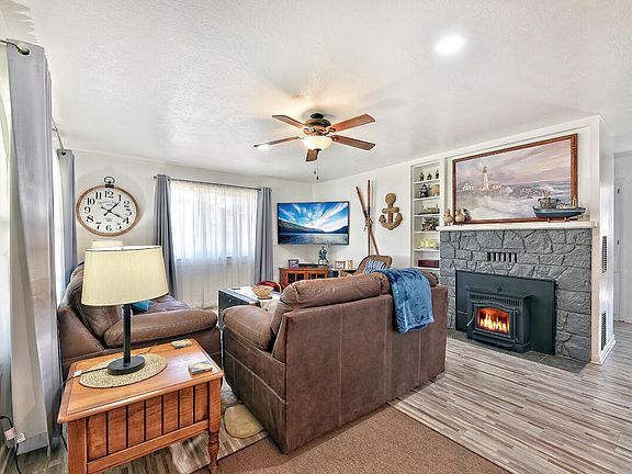 You will love this immaculate home in a clean and quiet neighborhood. The current owners have remodeled top to bottom in the last two years and the pride of ownership beams throughout. Enter into the open living concept with fresh flooring throughout the living room and kitchen with a cute breakfast bar separating the two from each other. The brand new pellet stove highlights the living room while the kitchen boasts all new stainless steel appliances as well as a spacious walk in pantry. All four bedrooms are good sized, and both bathrooms have new tile showers. The yard is very well sized and maintained with oversized RV or boat parking as well as a dump for the RV. The attached single car garage/shop combo is massive. This property has everything you are looking for and more at an affordable price! Schedule your tour today.