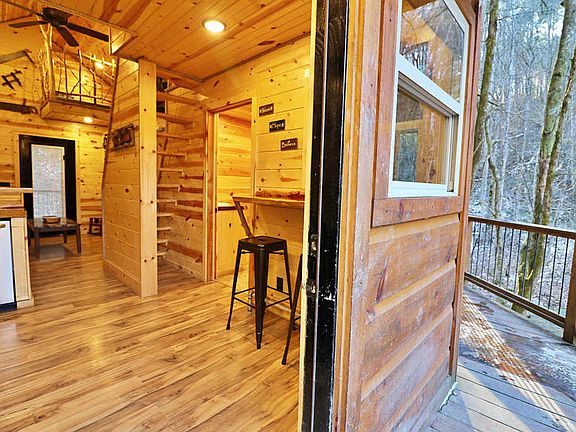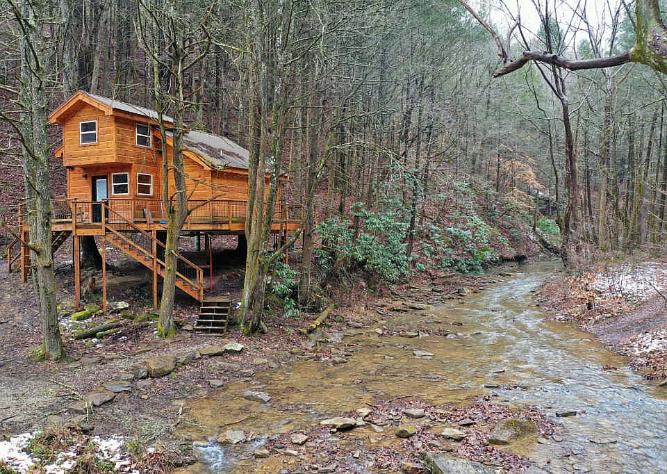 Treehouse/cabin sitting right along the bank of Byrgess Creek in Huntsville, TN....right in the middle of ATV county! Perfect vacation spot! Use it for personal vacations or as a vacation rental. This property has plenty of room to park your truck and toy hauler, and offers a great outdoor space. The deck overlooking the creek is a perfect place to enjoy your morning coffee, then enjoy a bonfire along the creek bed in the evening after a long ride. the interior features and open living space with a full bathroom and bunk room located on the main level. On the second level you will find the second bedroom and small loft area(currently being used as an additional sleeping area. The property will included 1 acre.