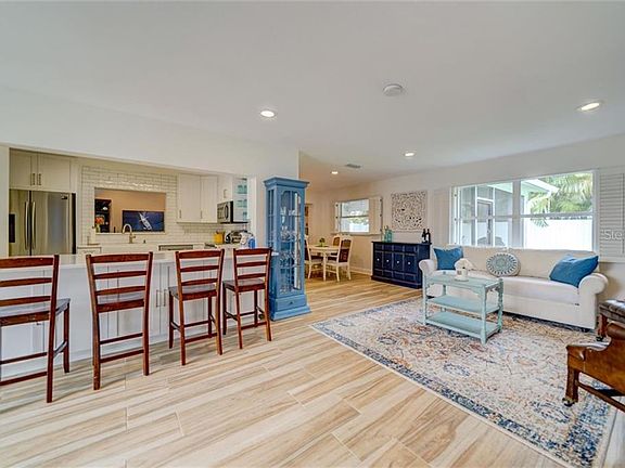 Appealing and beautifully updated, this 4 bedroom/3 bath ranch home with 2 car garage and circular driveway is located in sought after Dana Shores! Walk in to be greeted by an expansive open concept with a living/dining room combo, fresh neutral paint and new tile flooring throughout with a great view into the crisp, brand new backyard. The renovated kitchen features an all-white cabinetry package, specialty ordered hardware with a massive island for food prep and extra seating and storage. Spectacular quartz counters, new stainless steel appliances and tiled backsplash framing the window view into the family room makes this home perfect for entertaining family and friends. Take the entertaining outside through the French doors to the screened in, newly laid, spacious wooden deck with benches and large backyard with a newly-painted fence and enough space for a future pool. Tired of all that entertaining? Retreat to your master bedroom oasis! Serene and airy with high ceilings, the huge master suite features brand new tile, walk-in closet, spa tub, separate dual sinks and walk-in shower. The other three bedrooms are beautifully maintained with brand new carpet with the option to have an office, home gym or guest quarters. Other recent updates include: New Trane A/C system, French drains and a gutter system surrounding the entire home and a freshly painted exterior with cedar shutters giving the home a modern, farmhouse look. Just bring your toothbrush because all of the hard work has been done for you! Conveniently located to the Veteran's Expressway, I-275 and the beach bridges. Don't miss this gem of a home and schedule your private viewing today!