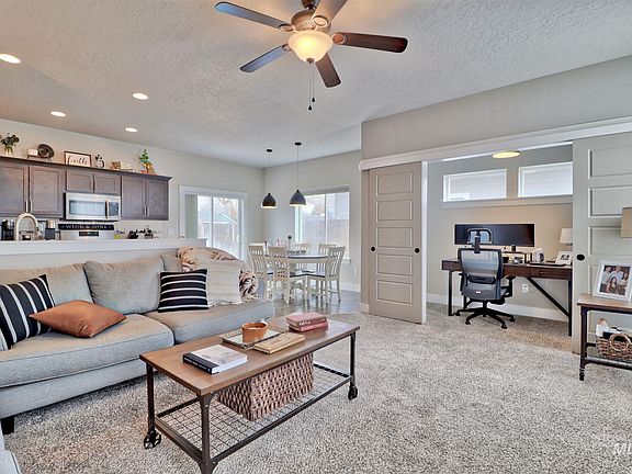 Beautiful nearly new home (2017) in great Boise location. Granite countertops in kitchen/baths and accent lighting fixtures add flair and character to this inviting home. Kitchen features gas range and pantry. Large master bath has dual vanities, tiled floor, tiled walk-in shower, and huge master closet. Barn doors off of living area open to a small flex space or home office. Dual climate control for added comfort and efficiency. Gas BBQ stub on back patio and fully fenced yard. No CC&Rs or HOA dues!