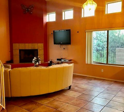 PRE LEASE for May 2019 - Beautifully appointed, long term fully furnished rental. Enjoy warm weather in Tucson and away from the sleet and snow. Centrally located in a lovely gated community, only 3 miles from UA & Banner Medical Center, just 10 minute drive and near Mountain on the designated bike path. Close to shopping & dining. Features 3 bedrooms, 2 baths, high ceilings, large master bedroom located upstairs, orthopedic mattress, great room with cozy fireplace, 42'' TV, surround sound, fully stocked kitchen, open floor plan with 2 bedrooms, and full bathroom downstairs, low care backyard, covered patio,. Close to shopping and restaurants. Turn key ready! Students welcome!