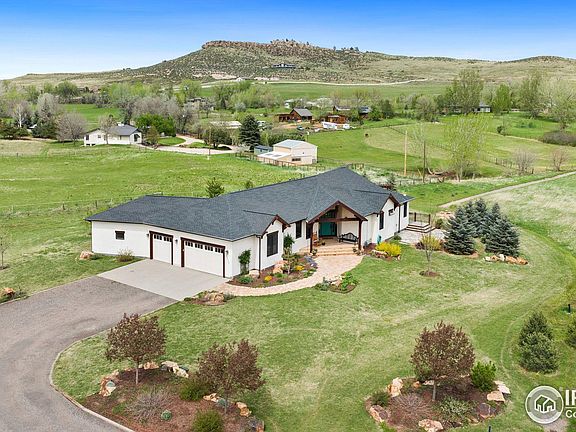 High quality custom home with numerous special features that can't be found elsewhere. Meticulous attention to detail with the solid oak crown molding and coffered ceilings and built-ins with beautiful woodwork throughout. The partially finished walkout basement features a full bathroom, two bedrooms, and a rec room that opens to a lovely covered patio. The portion of the basement that is unfinished is plumbed for a full bathroom or spa, provides plenty of room for storage, and boasts a small Catdominium. Enjoy the hidden, muted lighting around the ceiling of the downstairs covered patio. External gas and electrical outlets on the north and east sides of the home make your outdoor living a breeze. 18' x 23' heated and cooled workshop with built in cabinets and a work bench, in addition to the oversized garage featuring a dog wash station, and a separate additional storage area. Two horses or 4-H animals are allowed. Situated in a quiet neighborhood at the end of a large cul de sac with spectacular views. Direct access to a large green space and private pond. This is a beautiful, serene, one-of-a-kind home!
