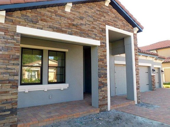 Welcome home to the Corina III Bonus at TerraLargo in Lakeland. This 2-story floorplan features 3,126 square feet of living space, with 4 bedrooms, 3.5 bathrooms, a bonus room, and a 3-car garage. As you approach the front of this home, you are sure to be blown away. You will immediately notice the immaculate curb appeal this home has with the brick paver driveway and walkways, large front porch, 3-car garage, and tile roof. Once you enter into the foyer, you will find a hallway directly to the left. This hallway holds 2 bedrooms, with a conveniently shared bathroom situated right in between them. The foyer then opens up to a massive great room with adjoining kitchen. This is the heart of the home where you can enjoy family time and host large gatherings. The great room measures 19'11" x 27'11" and features a tray ceiling and triple sliding glass doors leading to the extended lanai. Enjoy more of the Florida weather with the 32'8" x 12' extended lanai, which is perfect for continued entertainment. Head back in through the great room and you will find the kitchen. Your new kitchen will stun your guests as it boasts 42" white cabinets, stainless steel appliances, a built-in double oven, electric cooktop, Pompeii countertops, and a large island. Tucked to the side of the kitchen is a cozy café, perfect for sipping your morning coffee. On the opposite side of the home is the owner's suite with tray ceiling, walk-in shower, walk-in closet and dual vanities. Upstairs is an enormous bonus area with wet bar.