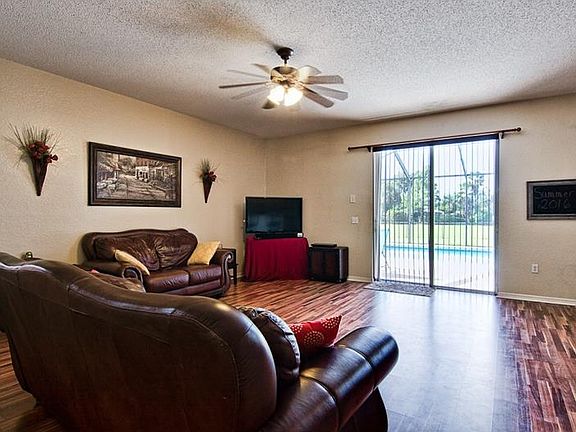 Lovely POOL home with 3 bedrooms/2 baths and office/bonus room which could be converted to a 4th bedroom. Home is well maintained and move in ready. Split floor plan with a spacious master bedroom. Master bath features dual sinks, separate garden tub and shower with a large walk-in closet. The kitchen has lots of cabinets, pantry, dinette area and even a snack bar. Perfect for entertaining. Living room is large and leads to the screened lanai with a beautiful pool and covered space. The view is incredible - extremely private as it looks out over a pasture. Don''t delay - this one is special.