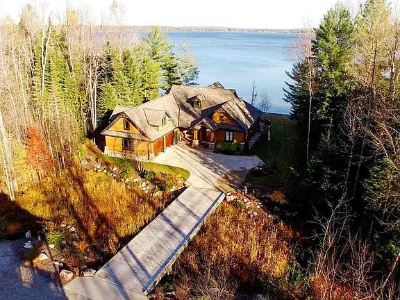 BURT LAKE home, only 3 Miles from the I-75 Exit, Indian River. This newer custom built home was built with full attention to detail. The main home is 40 feet from the waters edge, set on 3.75 acres. The Main House is finished in the Arts and Craft style with natural elements of wood and stone throughout. Solid American Walnut flooring. It features an open floor plan, custom kitchen, three main floor bedrooms and spa like baths. Large garage and guest house offer an additional 1800 sf and comes furnished.