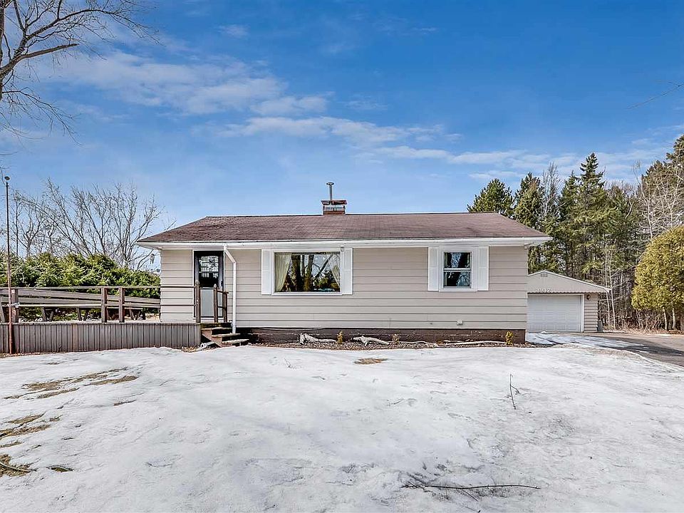That affordable home in Hermantown you have waited for! Sitting on a little over an acre on a nice lot with tons of outdoor garage and storage space is this 3 bedroom , 2 bath ranch. Patio doors to a south facing deck will be fun to entertain family & guests just off your kitchen. All three bedrooms are conveniently on the main level with an updated bath! The lower level makes for a super, rec area & office! A 3/4 bath is your bonus there! Updated furnace, well maintained and with all that garage space.... plenty of extra space in the outbuildings for your workshop, office, work out "room" or hobby space in the newest garage! Easy to the Mall and all area access! Trails behind and a private yard! Open Sunday 3/30 11:30 - 1PM