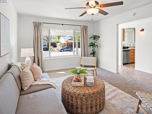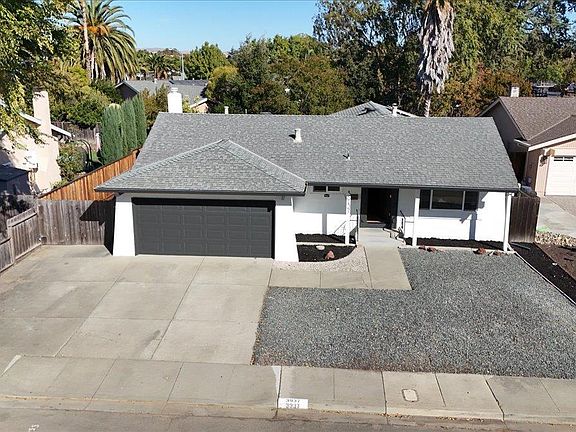 Make yourself at home in this beautiful 3-bedroom, 2-bathroom home located in the desirable Val Vista neighborhood of Pleasanton. This 1,372 sqft home is situated on a quiet cul-de-sac and features fresh new paint inside and out, dual-pane windows, and an owned solar system for energy efficiency. The updated kitchen boasts solid surface countertops, a large oversized sink, including an electric range/oven, refrigerator, and dishwasher. The spacious living and family rooms provide a warm and welcoming atmosphere, perfect for daily life and entertaining. Enjoy the convenience of RV/side yard access and the two-car garage. The backyard offers a lovely patio and lawn area, ideal for relaxation or gatherings. This home is perfectly located for commuters, with easy access to both I-580 and I-680, and is just minutes away from downtown Pleasanton, where you can explore local restaurants, a farmer’s market, shopping, and summer concerts in the park. Don’t miss the opportunity to make this wonderful home yours today!