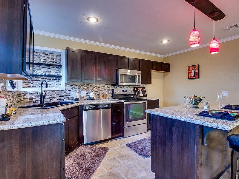 TOTAL renovation in central location! This home was remodeled with an emphasis on the kitchen and bathrooms! Gorgeous bullnozed granite with kitchen island and pendants. Beautiful designer backsplash with spice rack, espresso kitchen cabinets, granite composite sink with brush oiled bronze faucet and fixtures, recessed lighting, stainless steel appliances, complimentary wine rack and brick pattern ceramic tile. Refinished hardwood floors throughout, crown molding, new doors, hardware, light fixtures and paint. Bathrooms have ceramic tile, undermount new vanity, tiled shower with border, new bathtub and new toilet. BRAND NEW central heat and air! Open layout and spacious bedrooms; this home is beyond move in ready and ready for it's new family!SELLER WILL HELP WITH CLOSING COSTS!