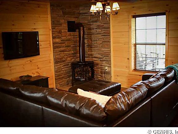 Enjoy the view of Seneca Lake from this SPECTACULAR, 3 bdr, 3.5 bath home! This log sided home, built in 2013, is Located on over an acre just off of the Seneca Lake Wine Trail. It comes with all the bells and whistles; tile showers, granite counter tops, gas fireplace, and more! Take in the sunrise on the 32'X18' deck or relax in the 6 person hot tub. Upstairs you'll find 2 bedrooms with their own private balconies with gorgeous views of Seneca Lake. Entertain your guests in the finished basement complete with a mini bar and additional living space! It won't last long, call today!