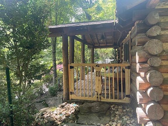Gated property with authentic mountain log cabin located on the Middle Fork of the French Broad River. Beautifully furnished, waterfall & small trout pond with sitting area behind house, gated yard, two porches, propane & wood-stove heat & heating/cooling wall unit. Hiking trails on property with a private botanical garden and private long stretch of river. One year lease; first & last month, & security at lease signing. Background check required. Everything included in monthly rent including all utilities, internet, TV, electric, & water.
