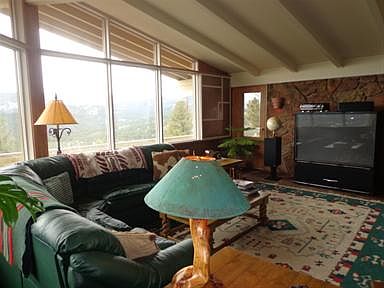 Views, views, views. Fantastic ranch home at the end of a very private and quiet cul-de-sac. Beautiful 1.3 acre lot. Looks like John Wayne lives here! New wrap around maintenance free deck. Two wood burning fireplaces with an indoor grilling area! Private courtyard surrounded by impressive rock out croppings. Walls of windows to enjoy the mtn. vistas. Bang and Olufsen sound system inside and out. Nice flat yard out front for entertaining.