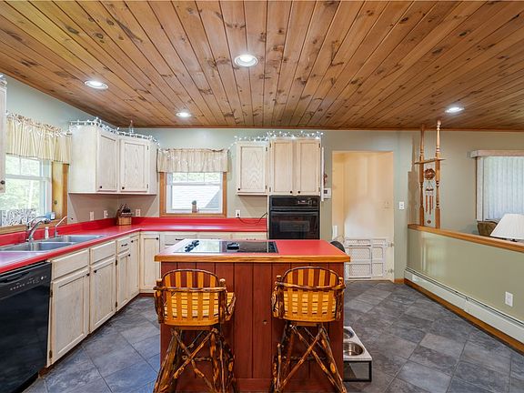 A mint-condition split level is located on Roosa Rd in the Town of Canisteo. The vinyl-sided, well taken care of home sits on just over 3 lush acres. Enter into a large foyer with a closet & ceramic tile floor covering. Go up to the spacious kitchen with lots of cabinetry and counter space, including a breakfast bar with two stools. Ceramic tile floor and tongue & groove wood ceiling. S/R/DW stay. The living room, cozy dining room and hallway all have beautiful hardwood floor covering. The W/D are located on this level behind louvre doors. Two bedrooms with vinyl floor covering and a full bath complete this story. Everything you need is on this level! However, going down from the foyer is a large family room with a bar, a big half bath and two other rooms that could be used for bedrooms. Boiler new in 2008 and roof is about 10 years old. Water tank age, unknown.