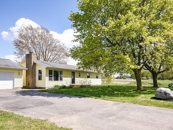 This up-to-date ranch on 1.2 acres with a pole building is ready for new owners. Updated flooring, paint, fixtures, newer roof and windows, and more. Large living room with fireplace and 4 bedrooms (large master with double closets). The two car garage is well done and there's a pole building at the back of the property. Close to town yet a world away. Make it yours today