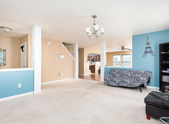 If you are looking for a spacious home, this is it. This huge kitchen has plenty of counter space and cabinets for storage, an eat in area, a newer stainless steel/black stove and overlooks the family room. Kitchen also has a large walk in pantry, drop zone and patio door leading to patio and fenced in yard. Family room had laminate wood flooring installed 2 years ago. Main floor also has a dining room/living room right past the foyer. Large bonus/loft area upstairs perfect for media room, at home office or play area. Walk in closets in all of the bedrooms and large laundry room make storage space a dream. Extra spacious Master bedroom is away from the other bedrooms for a little privacy. USDA 100% financing eligible!! Fenced back yard, patio and rocking chair front porch.