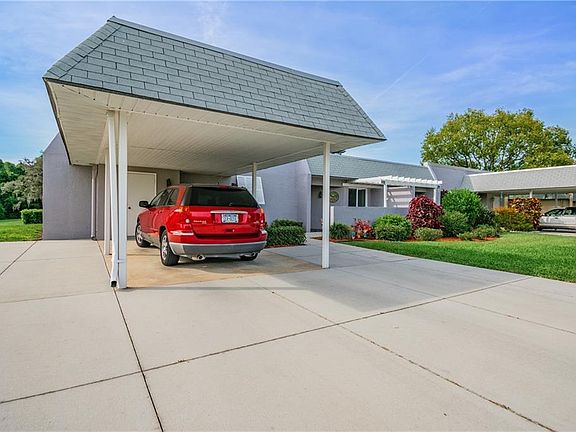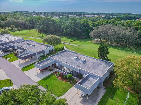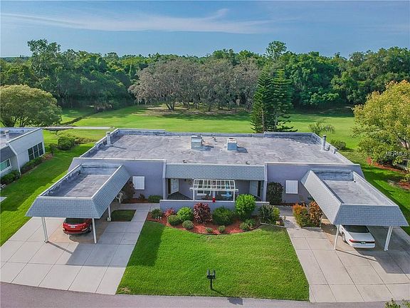 Florida Living at it's best! This move in ready Villa has over 1600 sq ft of living space and overlooks the 12th hole on the executive course in beautiful, guard gated, Seven Springs Golf and Country Club. The split plan 2 bedrooms and 2 baths give you plenty of privacy and both bedrooms have double walk in closets. The open floor plan provides ample space for entertaining with separate Formal Dining Area and a Large Sunken Living Room with a Wood Burning Fireplace, bar area and lovely pecan wood floors. Kitchen has granite countertops with dining overhang, solid wood cabinets, full size washer/dryer. Outside there is a front patio area to relax and soak in the sun and and rear patio area overlooking the golf course. Plenty of parking with 1 covered space and 2 uncovered. AC was installed 2016 and there is new soft water conditioner system. Monthly maintenance includes: building exterior, exterior paint, roof, lawn care, pest control, trash removal, water, sewer, and basic cable package. Seven Springs Golf & Country Club offers affordable memberships with clubhouse, golf course, restaurant, fitness, tennis, heated pool, and member functions. You are close to shopping, beaches, parks, restaurants, EZ access to Suncoast Parkway (589) and less than 40 min drive to Tampa International Airport. Come see Florida living at its best today.