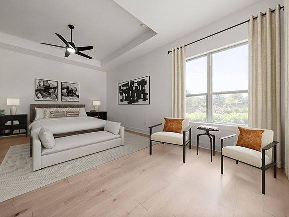 Beyond the sophisticated hall lies the spacious great room, adjoined by the large island kitchen and breakfast area, which leads to a rear-covered porch, perfect for entertaining. The primary bedroom features an alcove entry with a tasteful art niche and double doors. This inviting retreat is enhanced by a graceful tray ceiling and lovely corner windows. The adjoining lavish primary bath with soaking tub, oversized shower, and private toilet area leads to the immense walk-in closet. This home provides two additional bedrooms, each with its own attached full bath and walk-in closet. Disclaimer: Photos are images only and should not be relied upon to confirm applicable features.