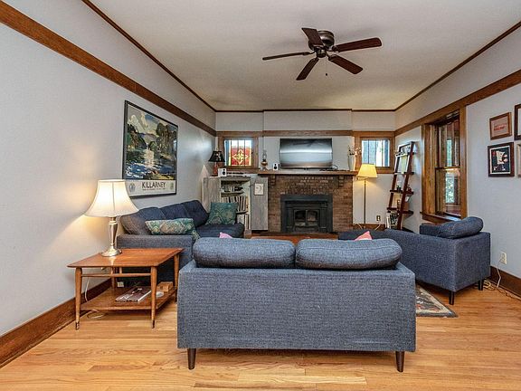 Historic home located South of Grand. Lot and location for this home are premium because they offer privacy and seclusion. Kitchen includes an island with barstool seating, granite counter tops and built in china cabinet. Hardwood floors through out the first floor. The sunroom at the front of the house creates a year round family room with full windows on three sides. Wood burning fireplace and formal dining room that is open to the living room. Master bedroom includes en suite master bathroom with double vanity and a walk in closet. Lower level offers additional recreation space and plenty of additional storage. 2017 Appraisal shows 2,128 sq.ft. living, 3 bedrooms, 2 baths.