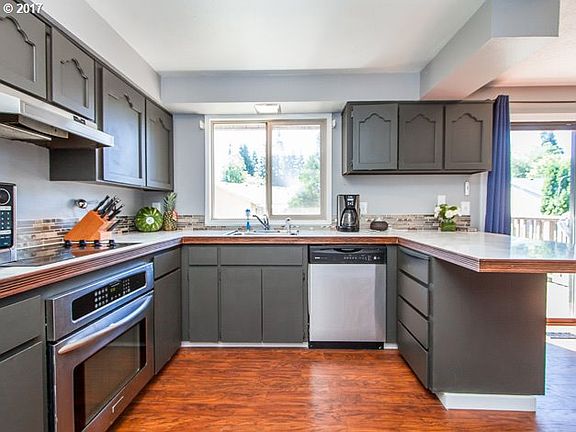 Nice split level home on almost a quarter acre! Open floor plan w/new laminate floors, updated kithen w/ss appliances, marble countertops. Slider from dining to large deck w/stairs leading to back yard. F/P in living room & family room. Remodeled baths. Tool Shed and lots of RV parking.! Fenced yard! Just blocks to Meinig Park. A must see!