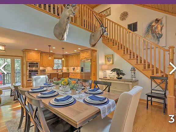 - Ceiling Fan(s), Kitchen Island, Window Treatments, Pantry, Recessed Lighting, Dining Area, Soaking Tub, Crown Molding, Carpet, Exposed Beams, Open Floorplan, Wood Stove, Wood Floors, Entry Level Bedroom, Upgraded Countertops, Kitchen - Gourmet, Family Room Off Kitchen, Stall Shower, Stain/Lead Glass, Tub Shower