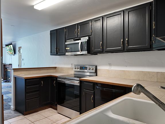Updated kitchen with plenty of cabinet space, newer appliances, and tile countertops