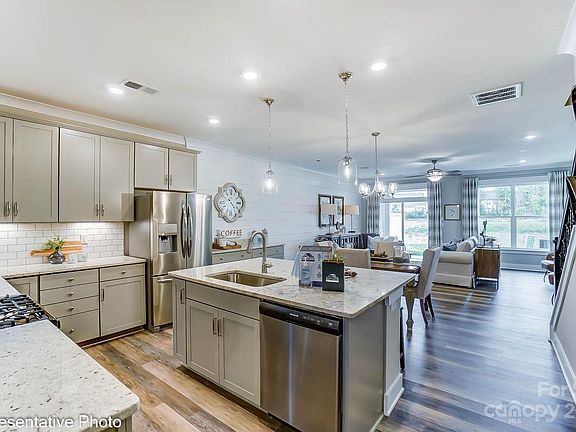 New townhomes in Harrisburg! This home has 3 bedrooms, 2.5 baths, and an attached, frontload, 1-car garage. The kitchen features white, soft-close cabinets and drawers, quartz counters, a tile backsplash, and stainless appliances including a gas range. Beautiful and durable Enhanced Vinyl Plank flooring runs throughout the main level, and all baths feature quartz counters. The primary suite, located on the second floor, includes a large walk-in closet and the primary bath features a tiled shower with semi-frameless enclosure and dual sink vanity. The second floor also features two additional bedrooms. Enjoy the outdoors on the rear 10x8'4" patio. Community amenities include pool & cabana, dog park, paved walking trail, and playground.