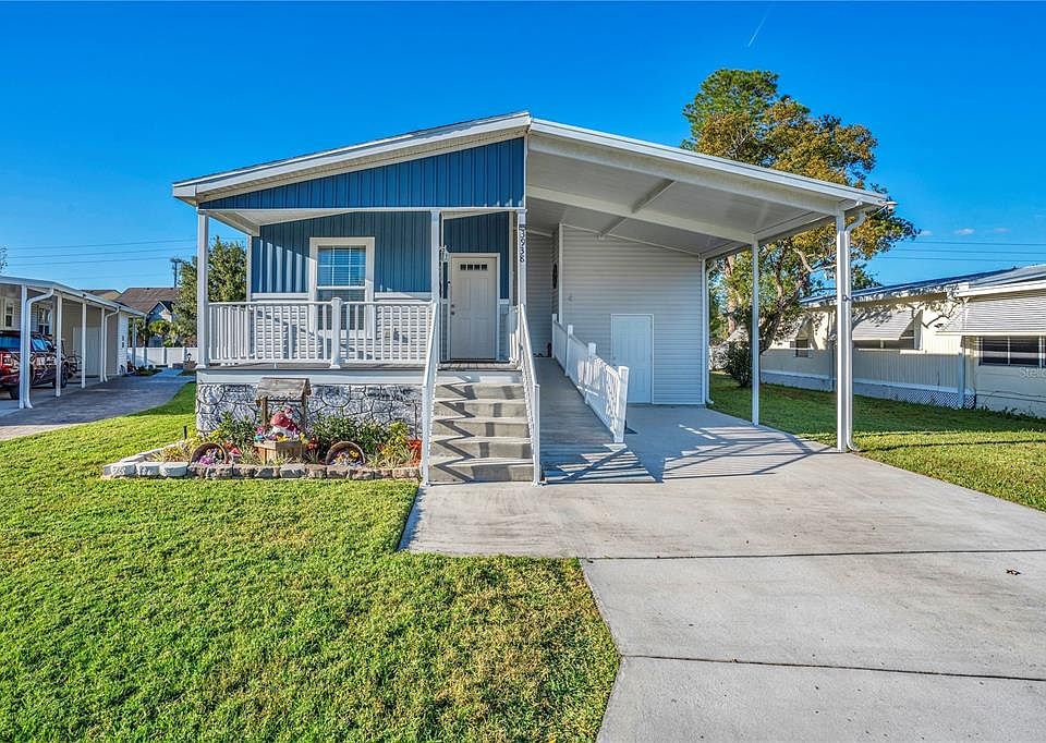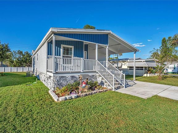 Built in 2021, this Vero model offers a beautifully maintained 3-bedroom, 2-bath home with a bright, open layout designed for comfortable living. High ceilings and laminate wood flooring run throughout the main areas, creating a warm and inviting atmosphere. The spacious island kitchen features quality cabinetry, stainless steel appliances, and plenty of counter space, making meal prep and entertaining effortless. The primary suite includes a generous walk-in closet and a well-appointed bathroom with double vanities. Two additional bedrooms provide flexibility for guests, a home office, or hobbies. Enjoy relaxing on the screened porch, perfect for morning coffee or unwinding at the end of the day. The property also includes a 1-car carport, an extra storage shed in the back, and an irrigation system for easy exterior maintenance. Conveniently located just minutes from major shopping, dining, hospitals, and easy access to 434, this home combines comfort with convenience. The vibrant 55+ community offers a long list of amenities designed for an active lifestyle, including a clubhouse, fitness center, pickleball courts, swimming pool, whirlpool, billiards, bocce ball, shuffleboard, miniature golf, and tennis. Residents also enjoy daily social events such as bingo, dancing, farmers markets, and more. Lawn care and private water service are included, offering low-maintenance living in a welcoming neighborhood.