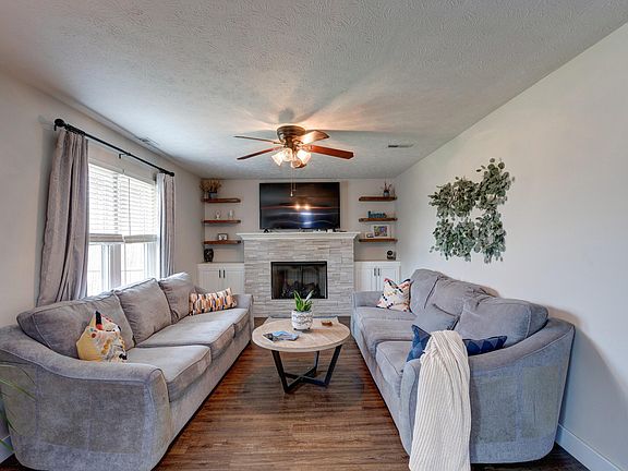 Modern 4 bedroom/2.5 baths with 2 car attached garage and privacy fenced back yard! Great location in Center Grove Schools, the Foxberry Trace subdivision backs up to walking trails, elementary school and is convenient to everywhere. Numerous updates in the past 5 years with; new roof, overhead garage door, flooring on main, custom ventless gas fireplace and built in cabinets +shelves, water softener, water heater, landscaping, kitchen refresh with tile backsplash, updated light fixtures, and newer thermal windows, back door and storm door. All kitchen appliances +washer/dryer stay. Enjoy your private back yard with 20x15 wood deck and plenty of green space to play. 4 bedrooms are hard to find in this neighborhood. Hurry!