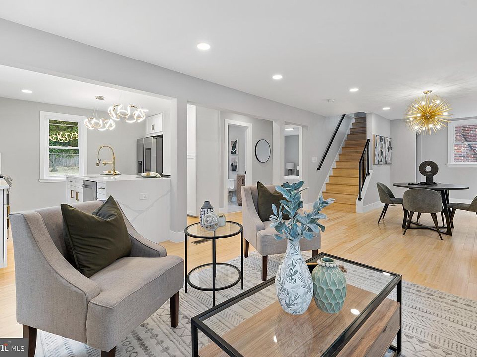 TASTEFULLY RENOVATED 5 BED, 3 BATH BUNGALOW IN THE HEART OF HYATTSVILLE! Welcoming front porch greets and leads the way to this adorable home's open concept main living space... Gleaming floors, natural light beaming from bright new windows, fresh paint, floating cased fireplace and modern touches... Brand new eat in kitchen featuring quartz countertops, unique tile backsplash, Samsung appliance package, wine fridge, abundance of cabinetry, and oversized island with space for bar seating... Main level bedroom and convenient half bath... Upper level presents 2 additional bedrooms and a grand bathroom with a soaking tub, intricate tile work, double vanity, and more! Fully finished basement with custom accent wall, two bedrooms, full bath, and enough space for a family room, home gym, recreation room or whatever you can imagine! Located just minutes from grocery stores, restaurants, the metro, shopping, and University of Maryland. Located less than 30 minutes from DC, VA, and NOVA. This one will go quickly, schedule your showing today!
