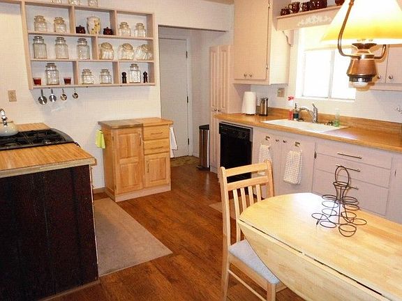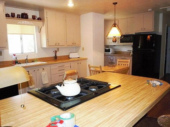 Family style cabin with plenty of room for everyone. The main level has a bedroom, Bath, Kitchen, Dining and Living area. Downstairs, there are two more bedrooms, with a TV area, Bath and Laundry, with door to outside. Under the cabin is a long, narrow storage area that will be useful. New roof was installed in 2014 - Kitchen remodel in 2011 - patio area has nice quiet privacy due to being located on a dead-end road. Property on 2 lots with extra long circular driveway, and 2 carports. All furnishings convey with sale. Being sold as-is. Come, relax, enjoy!