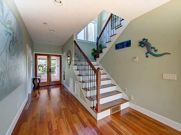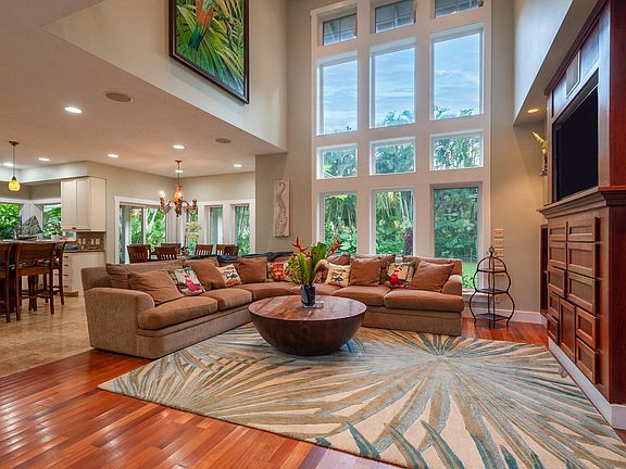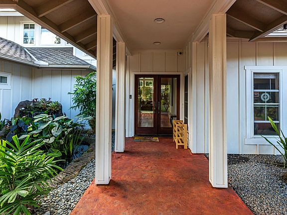 Beautiful, custom home with an open design, ample natural lighting and soaring 20 ft ceilings. This 5 bedroom/4 bath executive home is ideal for large families or a vacation rental. Located in the heart of Princeville, the two-story plantation style design features a circular driveway with a Porte Cochere offering protection from the elements. A pond and waterfall grace the entrance as you walk into the home. High ceilings and a wall of twelve wood-trimmed cased windows fill the great room with light. The floors are solid Australian ironwood and custom built cherry cabinetry is designed to display artwork and holds the media center.The large gourmet kitchen features a center island with sink and water purifier, stainless steel appliances, gas range with a double oven and brand new Travertine flooring that extends into the walk-in pantry and laundry room.There are four bedroom suites, each with a private bathroom, PLUS a fifth bedroom currently used as a music room AND a large office with built in cabinetry, a book shelf and granite slab counter top.Other notable features of the property include:*Master Bedroom features two skylights, a large master bathroom with dual vanities, walk-in shower, jacuzzi tub and walk-in closet*Large two-car garage *Fully Enclosed Outdoor Shower*Central Air Conditioning*Central Vacuum*Walk-in Food Pantry that doubles as a Hurricane Shelter with CMU walls and concrete ceiling*Iron Rod Ballasts with cherry wood railings*Exterior flood lights for back yard*Outdoor Sprinkler system*200 gallon water heater*Solar Water Panels*Large Propane Tank*Insulated exterior walls and ceilings*Coax cabling for exterior cameras at entry and rear of home*Stamped concrete driveway*Presidential Roof TileThis well-built home is priced right and move-in ready.