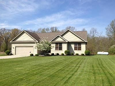 Enjoy the convenience of this ready to move into condition custom built home. Built in 2003. Many awesome customs were built into this home. Location is perfect, just a few steps away from the Mill Creek Golf Course. Situated on 1.2 acres. Delco water is a real added plus. Home offers 5-1/2'' solid Oak baseboard trim, 6 panel solid Oak interior doors, Hunter ceiling fans, 9' ceilings, cut glass transoms, Stainless Steel appliances, extra large first floor laundry w/built-in cabinets, full basement. Seller is giving a 13 month home warranty to the buyer at time of closing. Excellent condition!