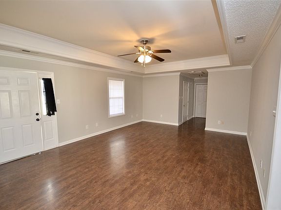 - LIVING ROOM DESC: Crown Mold, Ceiling Fan, Trey, Vinyl