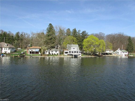 Wow!! Over half an acre with 140' of water frontage on the main channel of the West Reservoir. This updated home has a deck over the water, walk out basement, and additional docs for boats, jet ski's, kayak's... you name it. A 2 car garage is attached with cover. A circular driveway, plus additional parking make this home so easy to entertain. The master bedroom walks out to an additional deck to enjoy the water views. An eat-in kitchen, and large living room, share a rear wall of windows with amazing views. This home is very near restaurants/nightlife on the water, Turkeyfoot Golf Club, and so much more. A full basement, second floor laundry, outbuilding, and mud room are just some of the many amenities.